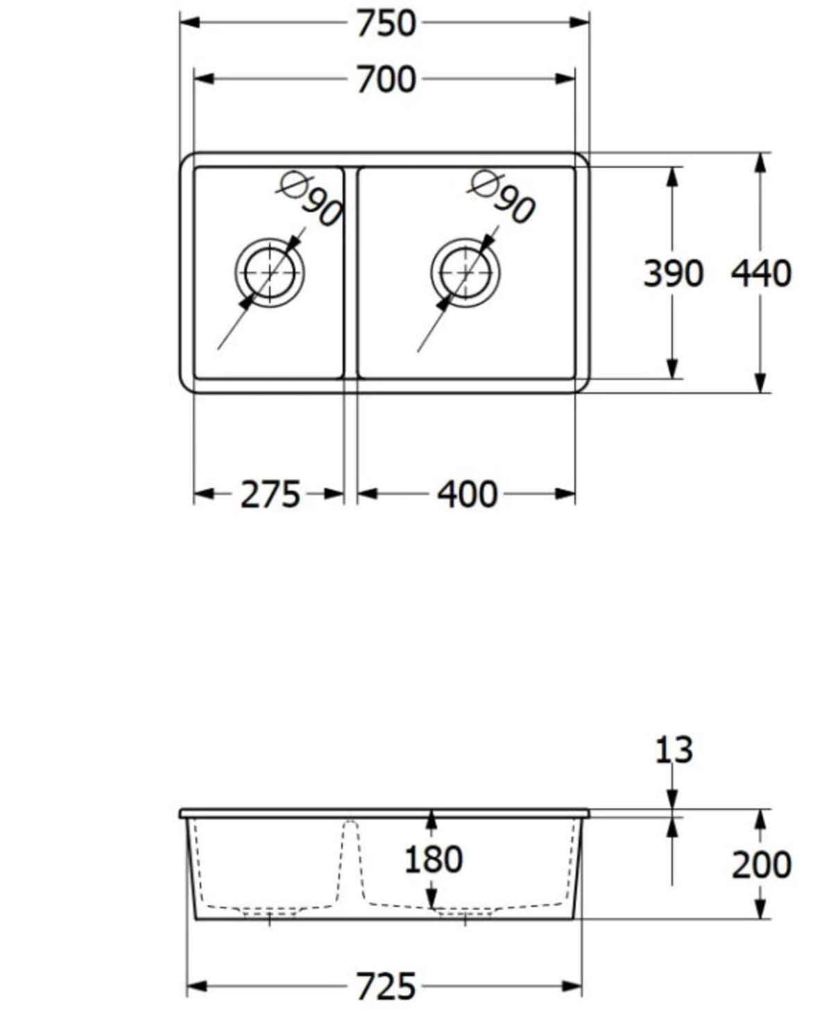 Rozměry dřezu (ŠxHxV): 750 x 440 x 200 mm