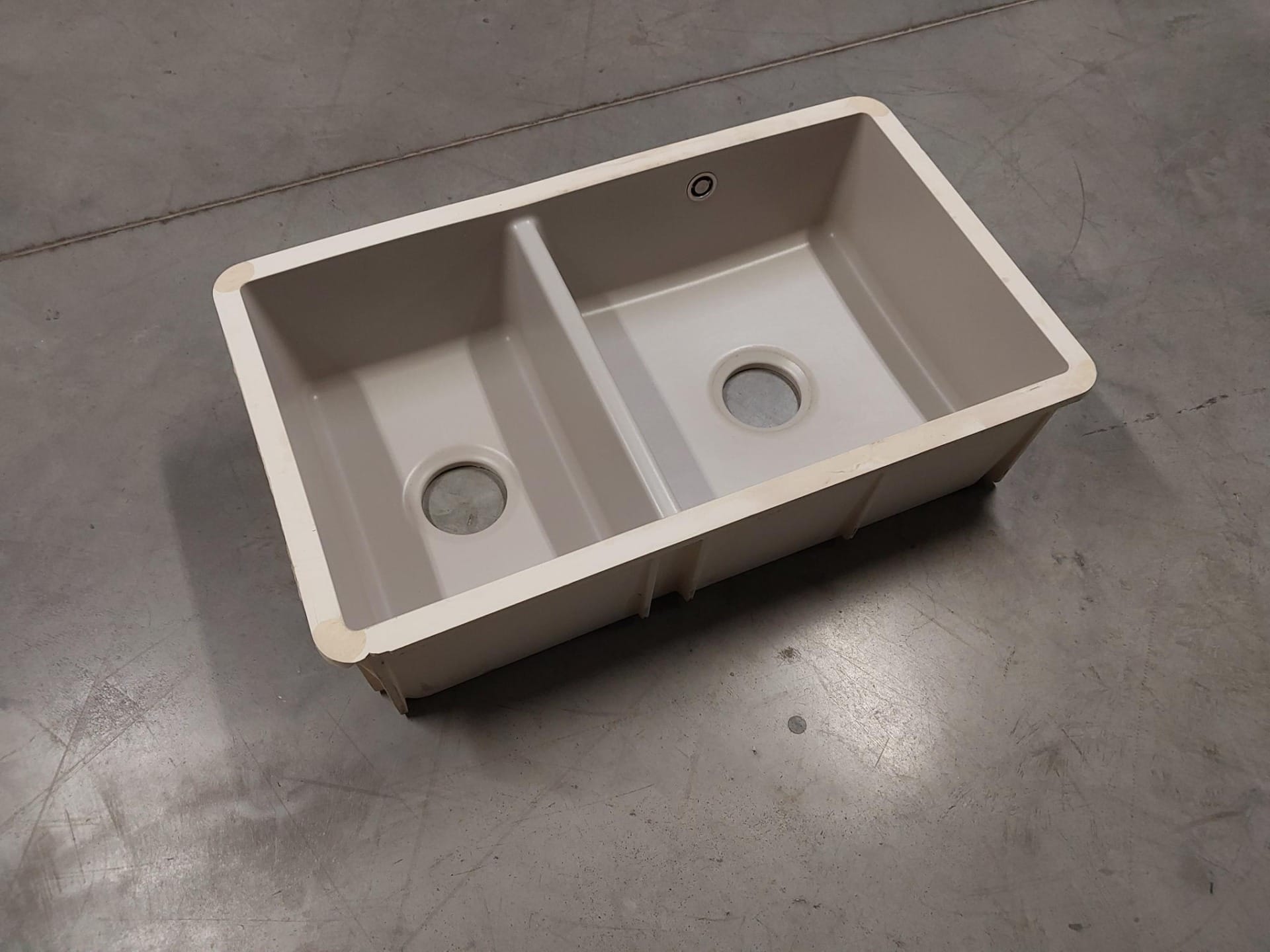 Dřez je určen pro spodní montáž pod pracovní desku.